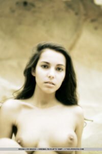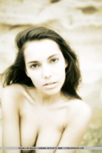 As fotos suavemente embaçadas de Regina em meio aos imponentes pedregulhos acrescentam um sentimento sonhador ao elegante fascínio e Chamrs refinados.