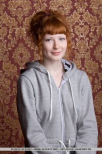 Designs intrincados do papel de parede que contrastam muito bem com a beleza elegante de Rochelle com recursos delicados e pele de alabastro suave.