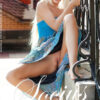 Alysha brinca no parque, vestindo seu vestido de tubo azul brilhante que acentua seus olhos…