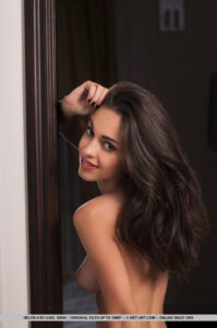 Olhos castanhos no quarto, um rosto atraente emoldurado por cabelos escuros brilhantes. Com sua aparência sem esforço e proporções corporais bonitas, Helen é o modelo de lingerie perfeito. Ela é abençoada com um físico lindo que é bronzeado com perfeição. Usando um sutiã roxo combinado que coloca seus seios redondos e inchados e uma calcinha roxa combinando que mostra seus quadris sexy e pernas atléticas, ela mostra um sorriso tentador enquanto posa para a câmera.