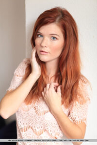 Estrutura longa e esbelta com pele lisa e veludo. Um rosto bonito que exala uma beleza sem esforço e encantos naturais. Mia Sollis é o epítome de uma senhora naturalmente bonita, sem menos de maquiagem. Sua aura graciosa e uma expressão calma complementam suas poses refinadas no topo do sofá azul.