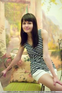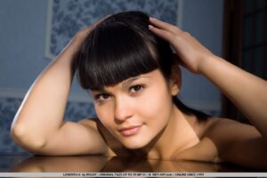 Com um rosto fofo emoldurado em uma franja reta e rabo de cavalo feminino, Landysh parece requintadamente adorável e deliciosa, com suas poses artisticamente provocativas no topo da mesa.